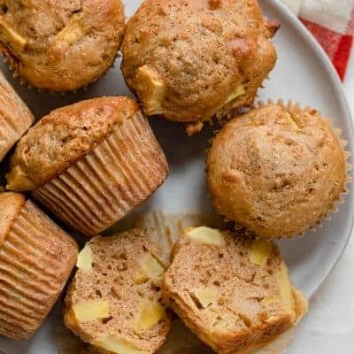 - Apple Cinnamon Muffins – You’ll love this one-bowl muffin recipe. They have that classic apple-cinnamon combo everyone loves with chunks of apples in every bite. The addition of Greek yogurt and coconut sugar makes this one of the best healthy breakfast muffins!