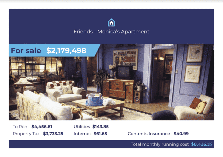If, like me, you’ve always admired the apartment’s lively feel, bright and airy spaces, and open plan living area, you’re probably wondering whether you could afford it too… if it was real, that is, which it isn’t. Bazinga!