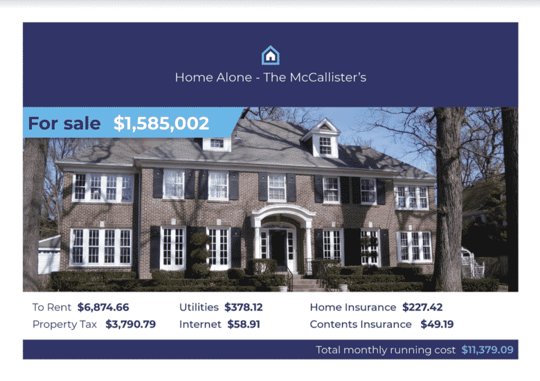 Unsurprisingly, this idyllic Chicago home doesn’t come cheap with a price tag of $1,585,002 to buy, or $11,379.09 per month for rent and living costs such as internet, utilities and, most importantly, home insurance (You know, just in case The Wet Bandits strike again!)