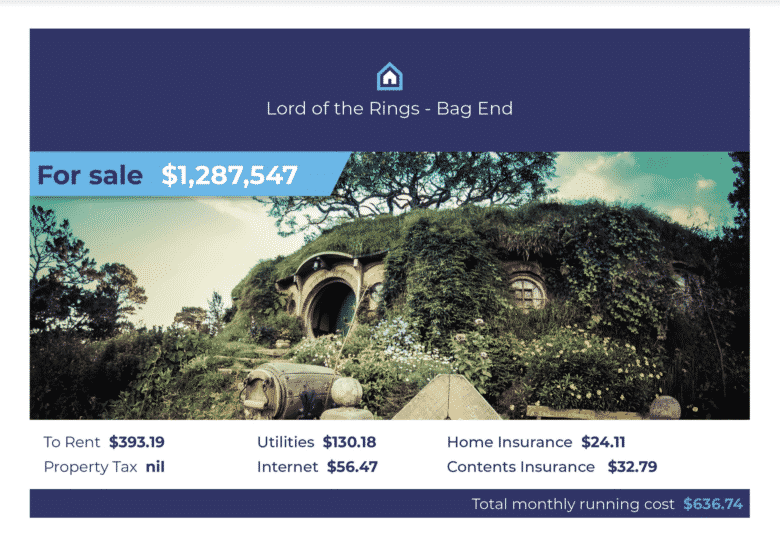 At $1,287,547, it would seem that in the real world, Bilbo’s peaceful lodging wouldn’t exactly come cheap. Yes, it’s much cheaper to rent this property ($636.74 per month) than it would be to buy it. That’s because the hobbit house is more of a hole in the ground than a real home, which would make renting/running it pretty cheap, whereas the land it sits on would cost quite a bit to buy. That said, a house this charming might just be worth all the silver in the Shire…