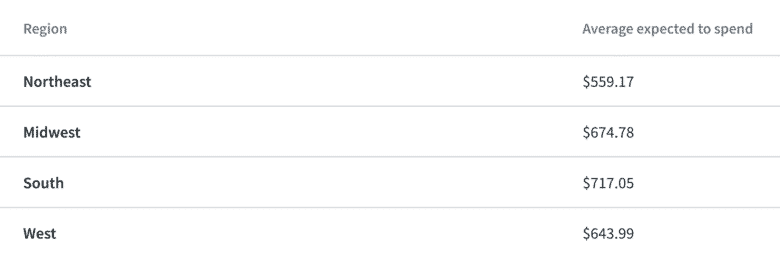 Southerners plan to spend an average of $717.05 on Black Friday. Those from the Northeast are expected to spend the least at an average of $559.17.