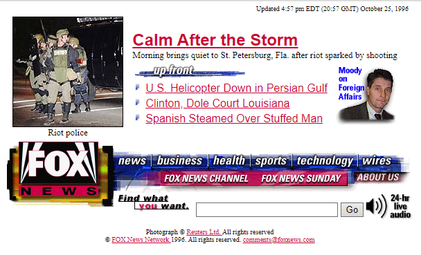 Fox News was designed for much smaller screens when it launched in 1996. Like CNN, it’s also a tiny time capsule of what was going on in the world at the time.