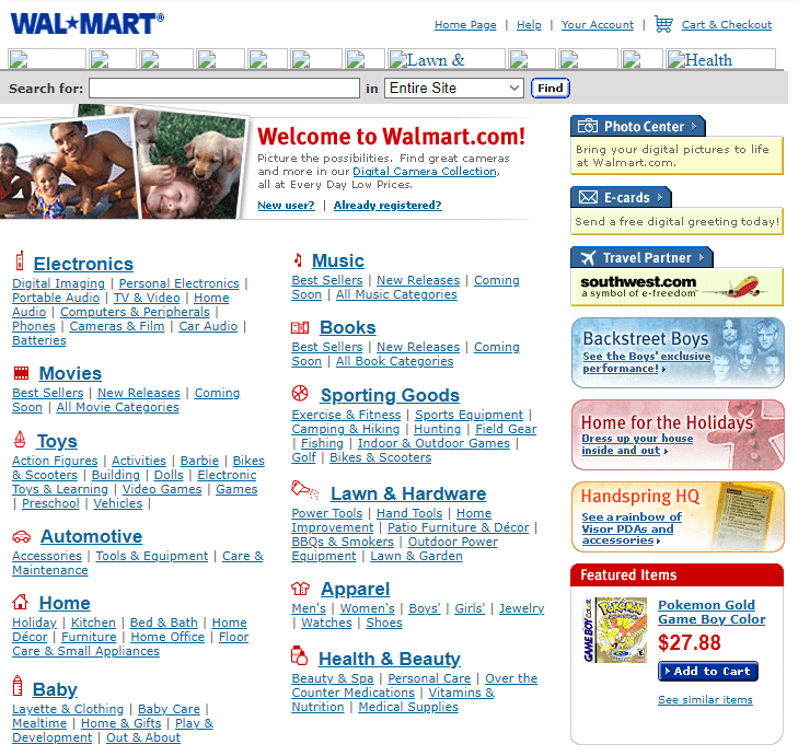 Walmart stores were already going strong when the company launched its website in 2000. You could shop online there right from the beginning, and some of those items and prices are a trip. (We bet that exclusive Backstreet Boys performance was really good.)