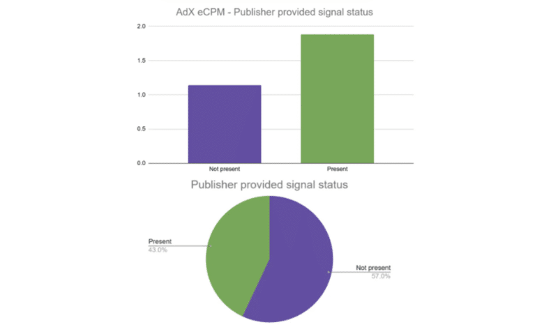 43% of ad requests included the taxonomy terms associated with the content the user had previously read (through PPS), while 57% of requests did not include them. With that in mind, whenever PPS was present, there was a significant increase in eCPM.
