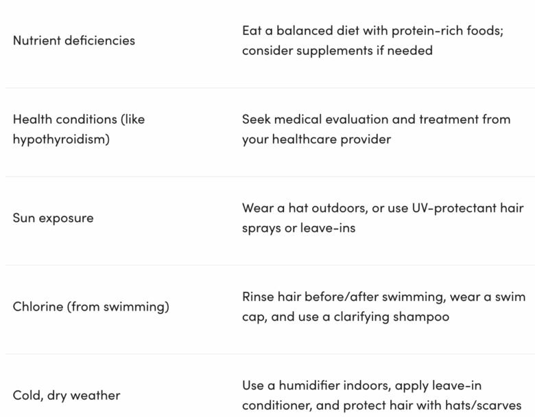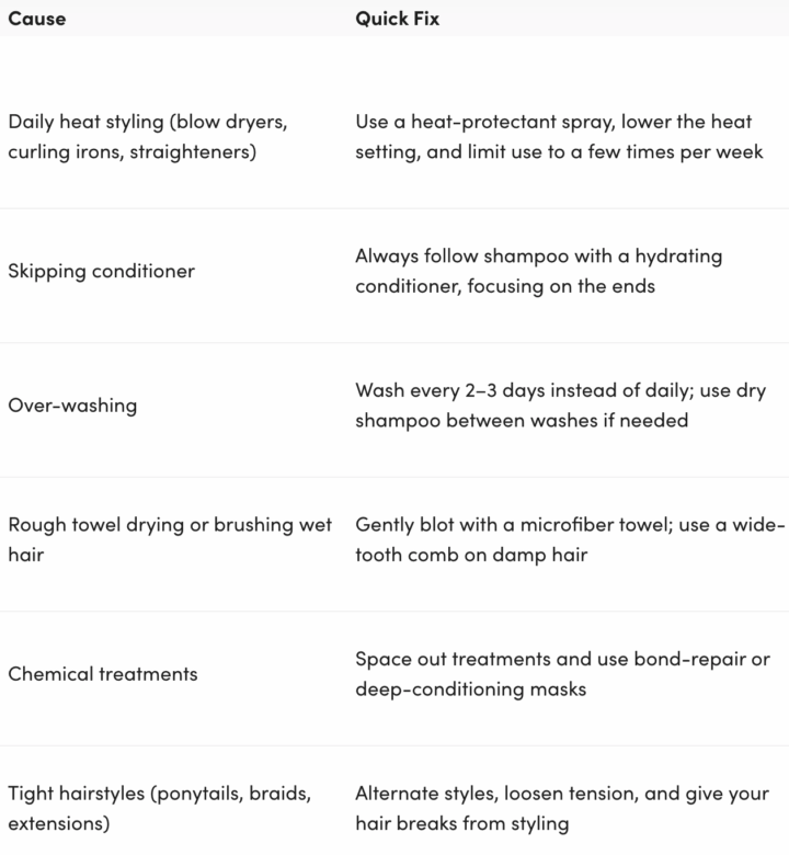 For quick reference, here are some common causes of brittle hair and what to do about them.