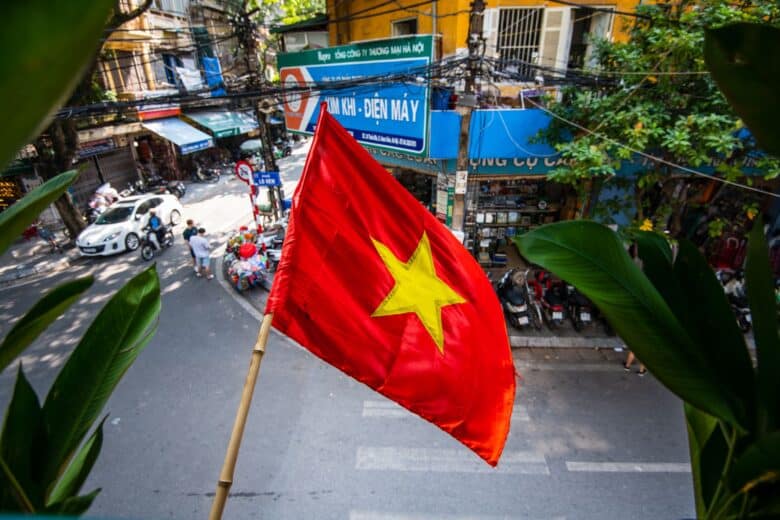 The red of Vietnam’s flag represents the bloodshed during the wars for independence, and the gold star represents the five main classes in Vietnamese society—intellectuals, farmers, workers, businessmen, and military personnel—united in building socialism.