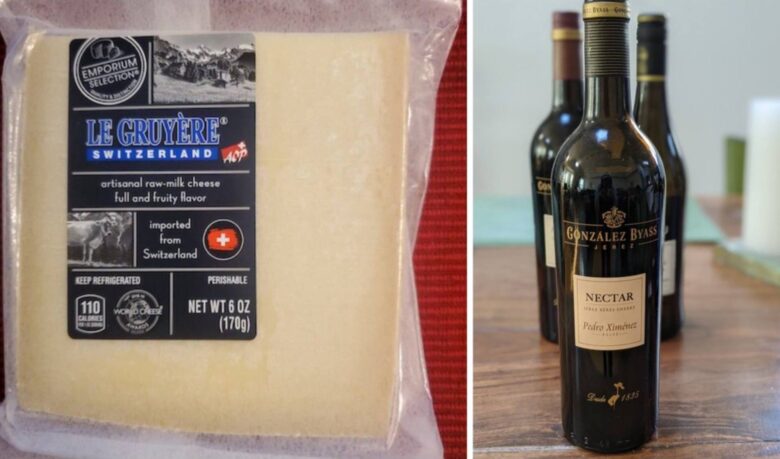 When we tasted the PX with the alpage Gruyère, we got a delightful surprise. The grassiness of the cheese sang—the flavors joined in a green, celery leaf sonata.  Pedro Ximenez, the cheese-friendliest of the bunch, would pair with aged, salty and bold cows and sheep.