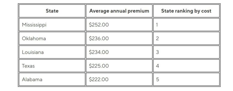 According to data from the Insurance Information Institute, the most expensive state for renters insurance in the nation is Mississippi. Renters in the Magnolia State pay an average of $252 per year for renter’s insurance. Let’s look at the top five.
