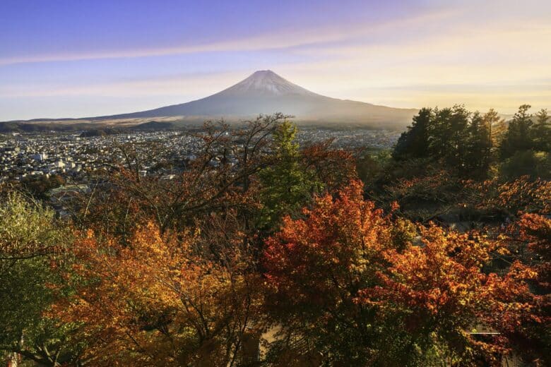 Mount Fuji will give you some of the most epic shots of Japan’s autumn beauty. The red and orange leaves with Mount Fuji off in the distance creates an eerie, foggy aesthetic that will surely put you in the fall mood!