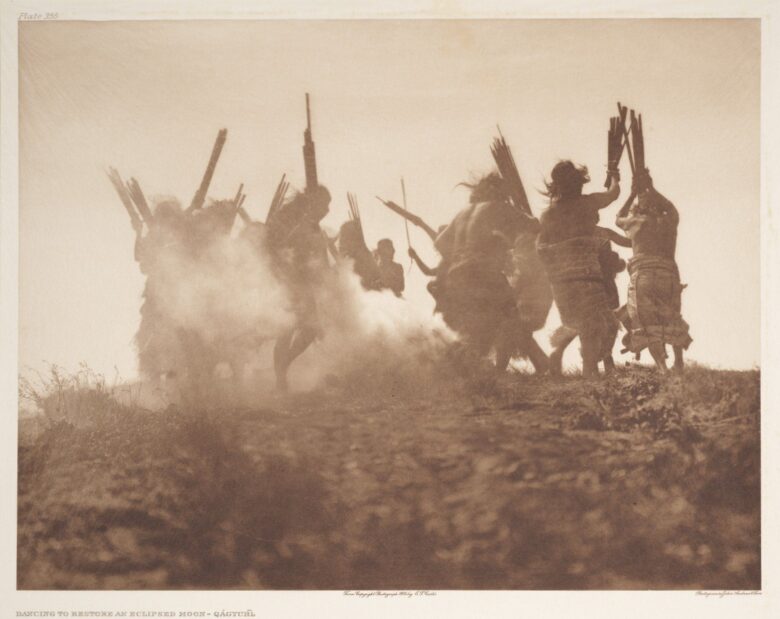 With the Qagyuhl, Curtis bore witness to a rare event: “Dancing to Restore an Eclipsed Moon.” This dance, steeped in ritual and belief, was performed to save the world from darkness, a testament to the tribe’s profound cosmological beliefs.