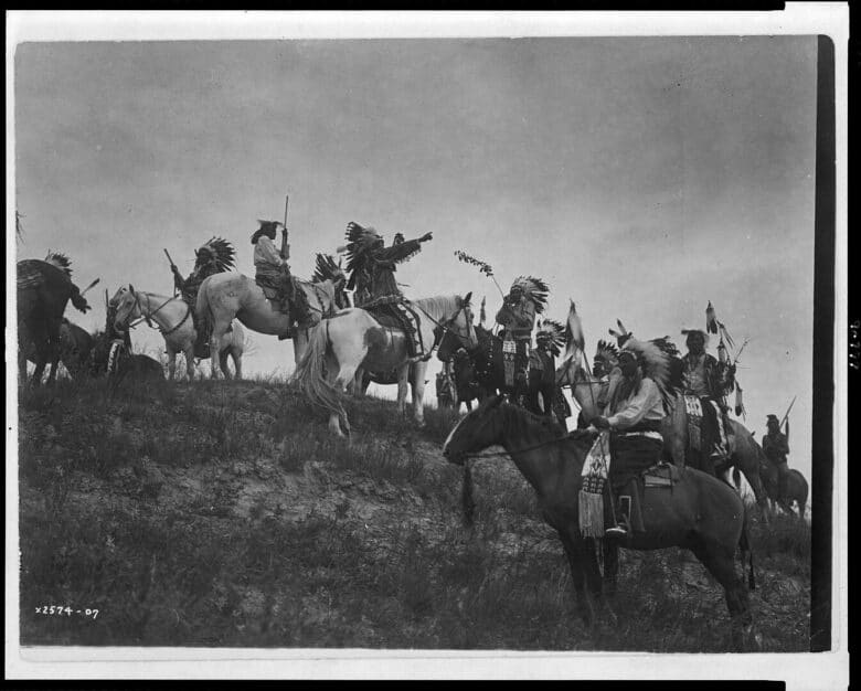 The Apsaroke, or Crow tribe, of the Yellowstone River valley greeted Curtis with their renowned horse culture. His images of them often reflected the bond between the Apsaroke people and their equine companions, highlighting their status as skilled horsemen.