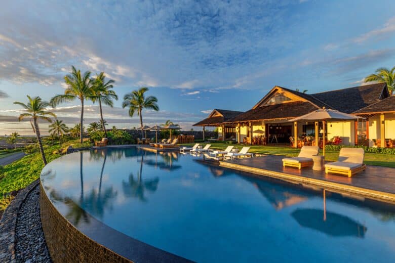 This perfectly positioned property sits on nearly one acre overlooking the Pacific Ocean on Hawaii’s Big Island. Located within the private club community of Kohanaiki, the estate is a short walk away from surfing, bodyboarding, snorkeling and well-known scuba diving along the coastline.