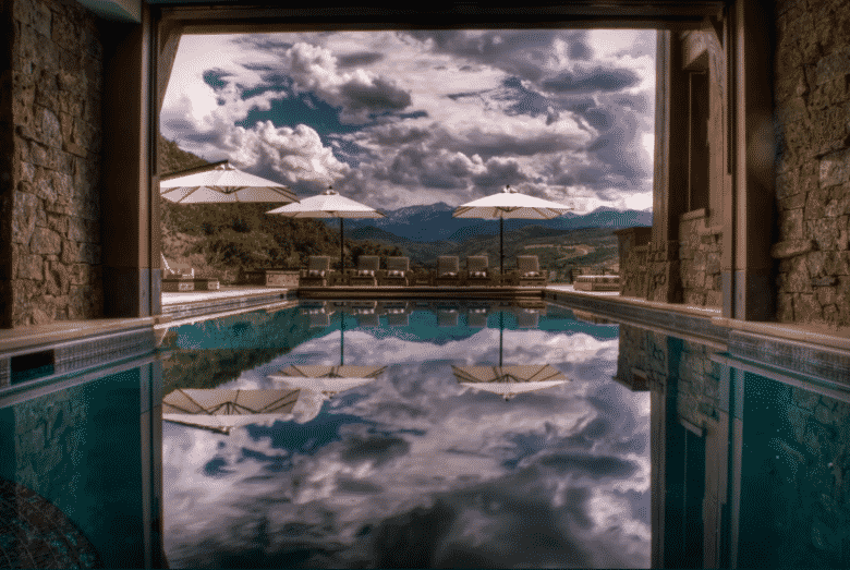 This property’s 75-foot long suspended glass-bottom pool is a real showstopper. In addition, this modern mountain estate offers exceptional Gore Range views and a rejuvenating spa with a waterfall.