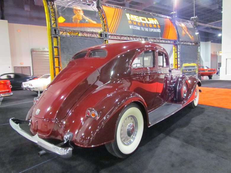 The Pierce-Arrow Silver Arrow was one of the world’s first concept cars, a dream machine showcased at the Chicago World’s Fair in 1933. From 1934-36, Pierce-Arrow produced Silver Arrow cars with some of the concept vehicle-styling cues, including the high-mounted (but narrow) rear windows. This 1935 example, part of the Academy of Art collection, has won awards at concours and a first prize from the Classic Car Club of America.