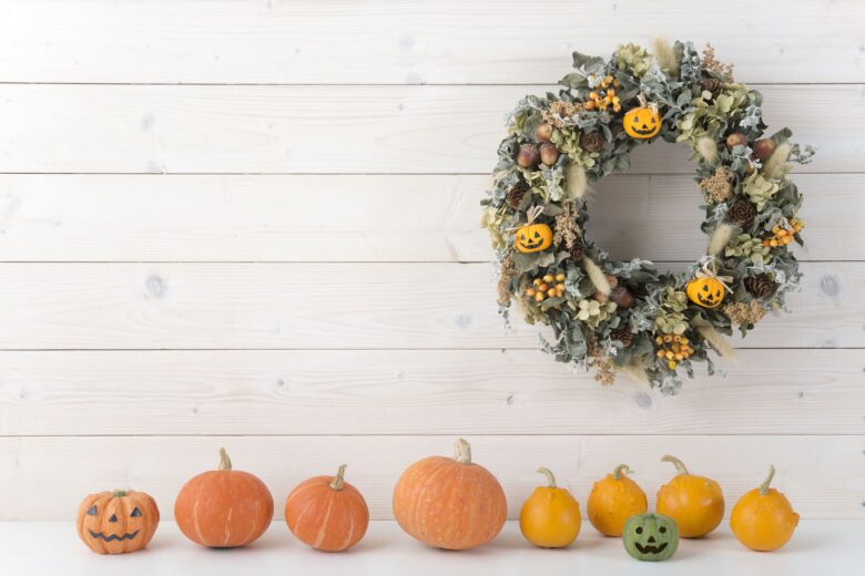 If you’re OK with making a less spooky Halloween wreath, this DIY Halloween decoration can be reused throughout Thanksgiving, too! You can use whatever leftover decorations you have to create your wreath, making it a cost-effective (but still stylish!) Halloween craft!
