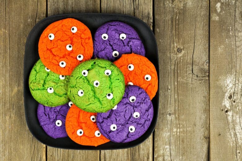 If your guests are coming hungry, these monster burgers are a super easy way to feed your guests, especially if you just buy frozen burgers. They’ll be totally on theme, too, if you also plan on making monster eyeball cookies!