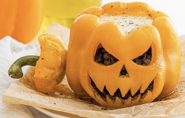 1. Jack-O-Lantern stuffed peppers