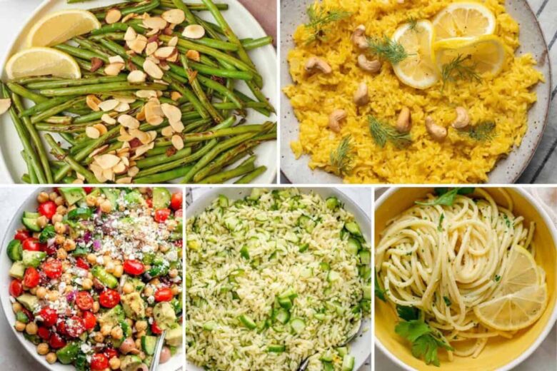 - Lemony Green Bean Almondine – With tender-crisp green beans, sliced almonds, and lots of flavor with garlic and lemon, these green beans will become your go-to side dish for busy weeknights and special occasions.