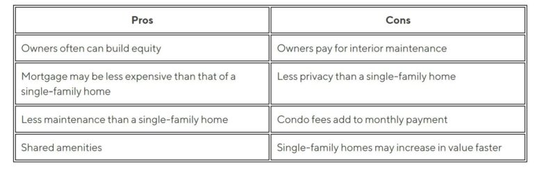 There are some pluses to that arrangement, especially if you take advantage of amenities like a gym or swimming pool. And monthly costs for utilities and insurance may be low. But because it’s a rental, you can’t build any equity. Also, if you want to stay or go, or make some changes to the apartment, you’re typically tied to the terms of your lease.