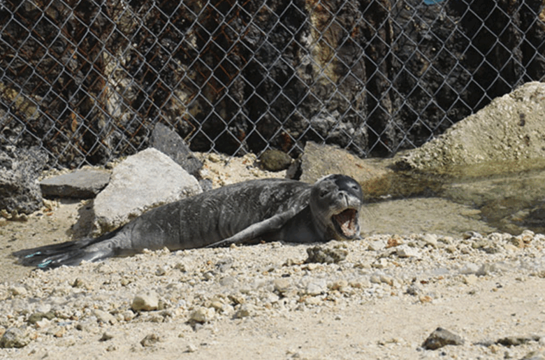 On the beach in the Northwestern Hawaiian Islands, the seals spent a few days in a holding pen to get used to their beach environment.