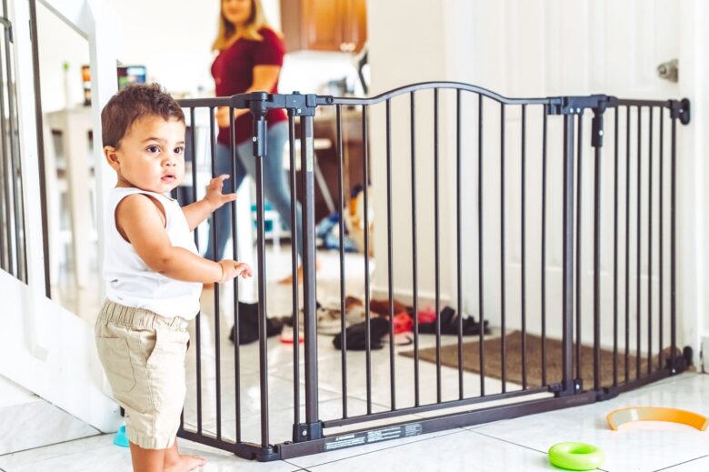 Some gates allow parents to step through, while others swing open. When looking for baby gates, it’s a good idea to seek out the ones that are the top-rated for safety and the most convenient for your home. For instance, you might get frustrated if you have to constantly step over a gate, so a swinging gate could be a better fit.