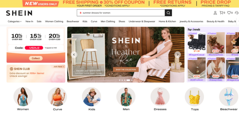 Shein– a 2008, China-based online retailer known for ultra-cheap, trend-driven clothing– mastered the art of low prices and trend-hopping through fast production and aggressive social media marketing. Its marketing strategy included constant new arrivals, frequent discounts, and influencer-heavy content, reshaping young consumers’ shopping. But it also drew criticism for poor labor practices and overwhelming overproduction.