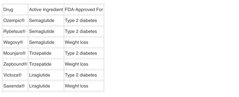 Liraglutide is the active ingredient in Victoza® (FDA-approved for type 2 diabetes) and Saxenda® (approved for weight loss). Liraglutide is also available as a generic medication.