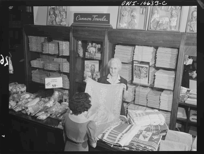 Towel department at the Crowley-Milner department store, Detroit, Michigan.