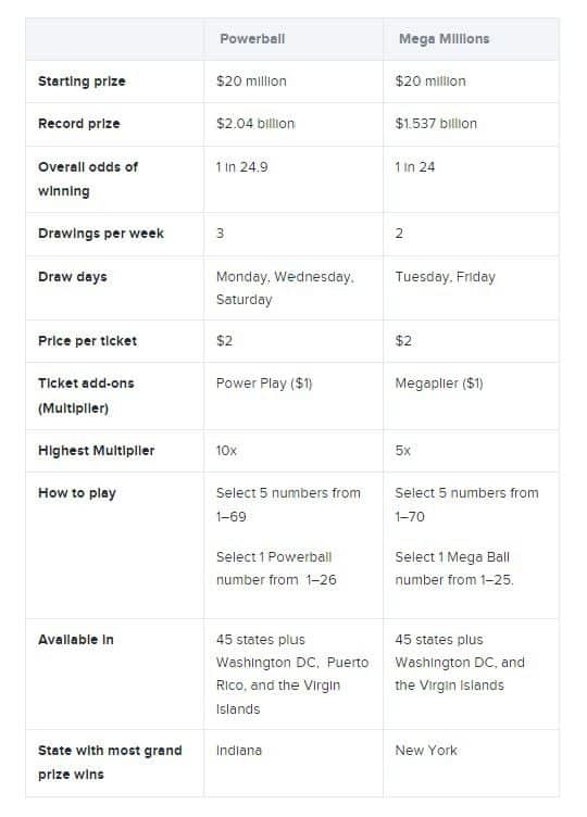 The difference between Powerball and Mega Millions: A summary