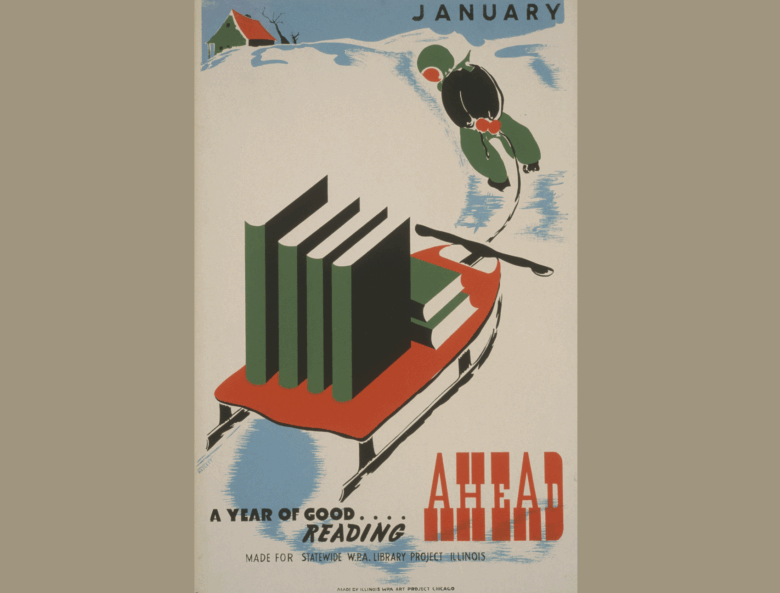 January, A year of good reading ahead. A poster by Hazlett, between 1936 and 1941.