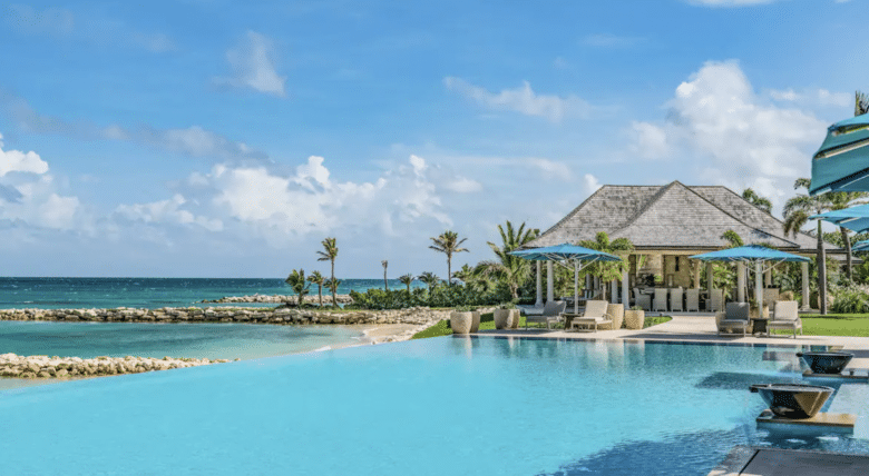 Situated on a private cove in Saint George, Antigua and Barbuda, the Pure Turquoise mansion boasts unique architecture and a large infinity pool and spa.