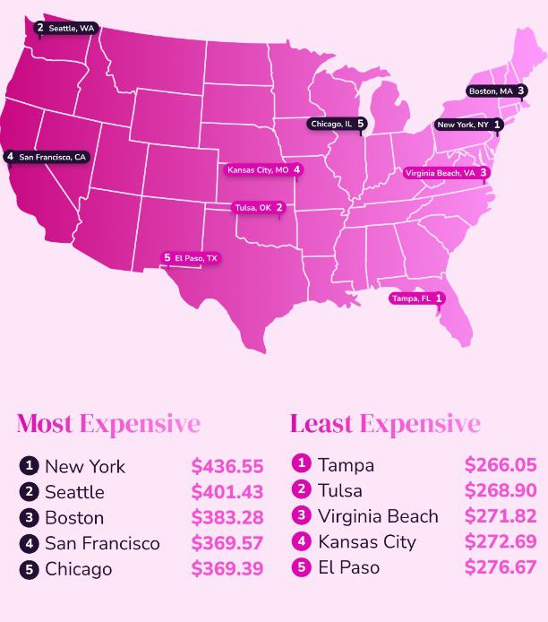 New York City tops the list again at $141, reflecting the city’s high demand and premium service offerings. To relieve the stress on your back and your wallet, the place to be is Tampa, FL, where a massage will cost you just $76.