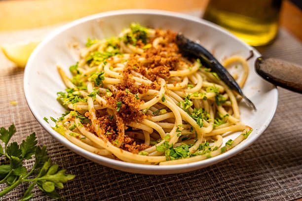 For an authentic taste of Sicily, pasta con le sarde offers a burst of Mediterranean flavor. Its name literally translates as “pasta with sardines.” This fishy pasta, made with sardines and other fresh ingredients, originated in the city of Palermo and is thought to have been created as a fusion of Arabic and Italian cuisines.