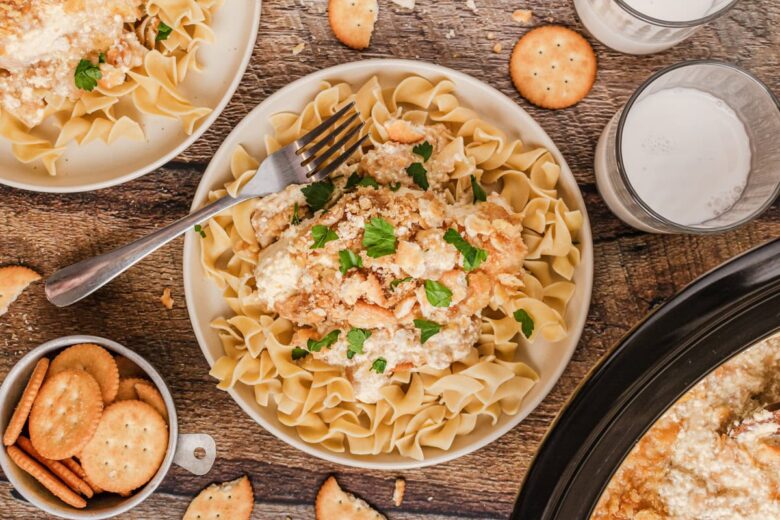 Creamy, buttery, and easy to throw together, this recipe works with basic ingredients. The Ritz cracker topping adds just enough crunch to balance the tender chicken underneath. You can pair it with rice, noodles, or roasted vegetables. It’s a good option when you need something simple but filling.