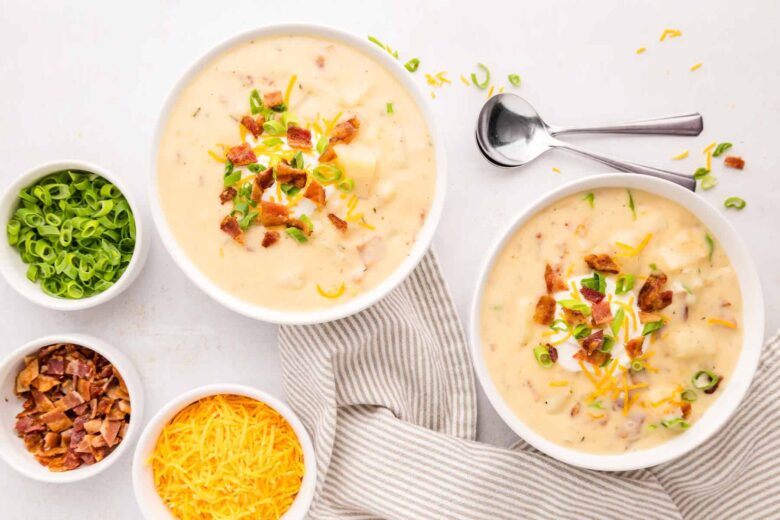 Loaded with bacon, cheese, and green onions, this soup hits the spot on cold days. The texture turns creamy without needing much stirring or extra dishes. Just chop your ingredients, toss them in the crockpot, and let the flavors build. It’s a reliable option for weekend meals.