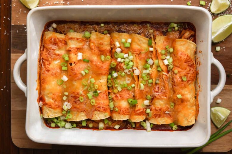 All you need are four simple ingredients and a few minutes of prep. These enchiladas cook all day and come out cheesy and flavorful. You can assemble them in the morning without extra steps. It’s a solid choice when your schedule is packed.