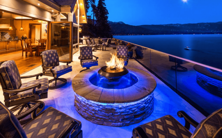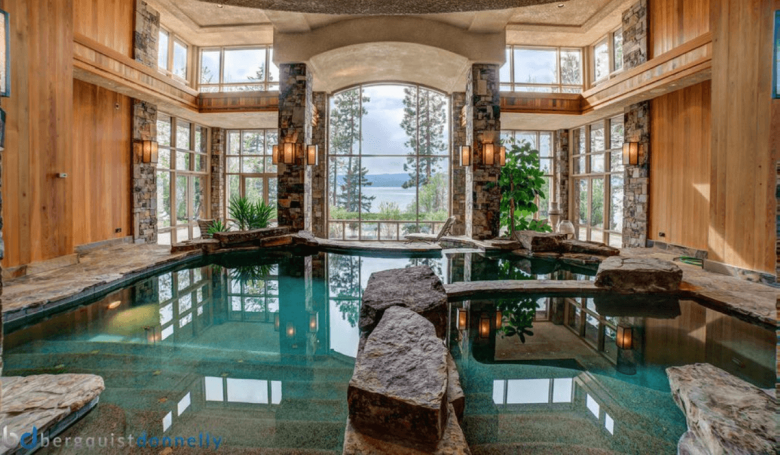 Special Features: Another lakefront home, this one has a private beach and four boat slips, plus a pool and spa, sauna, a library with a fireplace, and more.