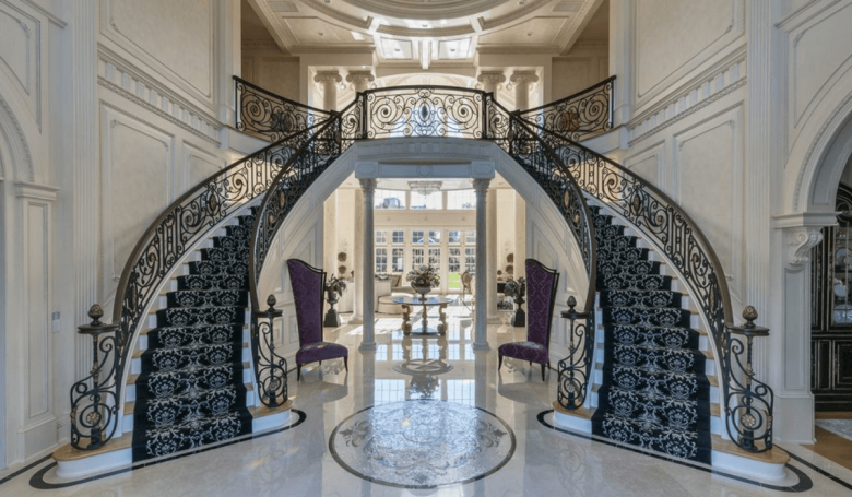 Special Features: There is ornate detail as far as the eye can see in this sprawling estate. Taking just a few steps inside will show you a grand staircase, intricately carved railings, and chandeliers to the left, right, and above. Go in a little farther, and you’ll see a cigar room, home theater, recording studio, a pool and spa out back, and more.