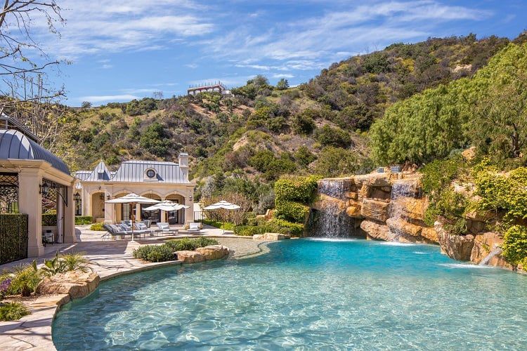 Mark Wahlberg’s mansion is surrounded by manicured gardens and features a resort-like grotto pool, skate park, and guest house, all set amidst total privacy. Like the listing points out, it’s a complete “private country club”.