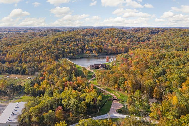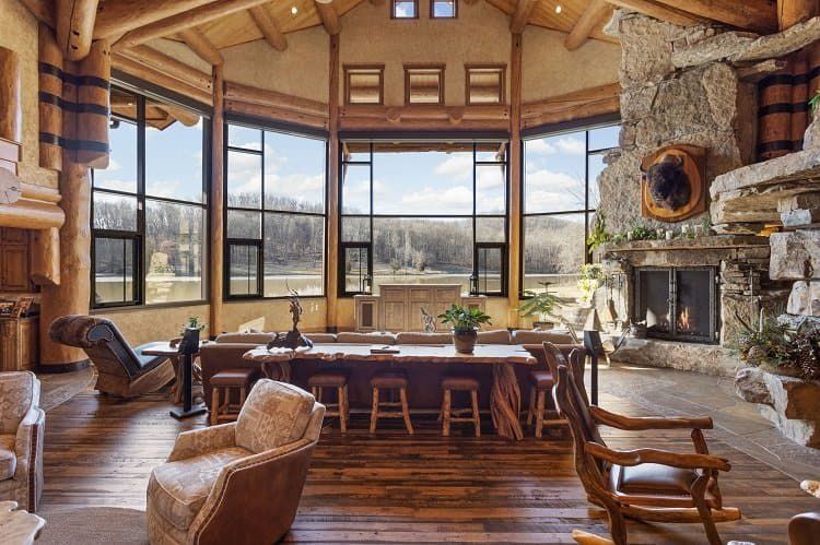 But the crown jewel is the 20,000-square-foot main house built from lodgepole pine sourced from the Northern Rockies. With 6 bedrooms, 11 full baths, and custom finishes worthy of one of NASCAR’s greatest, Tony Stewart’s house wows with its towering wood-clad interiors and welcomes visitors with features like a two-story waterfall and trout stream in the entry and a man-cave in the basement. Located in Columbus, IN, Hidden Hollow Ranch is a luxurious log home, and hunting preserve set less than an hour’s drive from the Indianapolis International Airport.