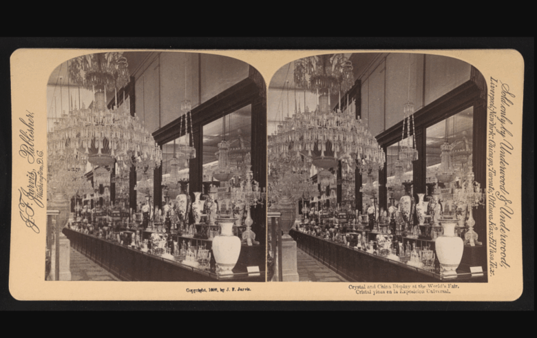 Crystal and china display at the World’s Fair.