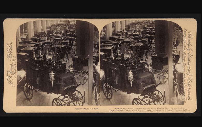 Carriage department, transportation building at the World’s Fair.