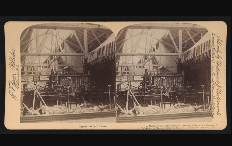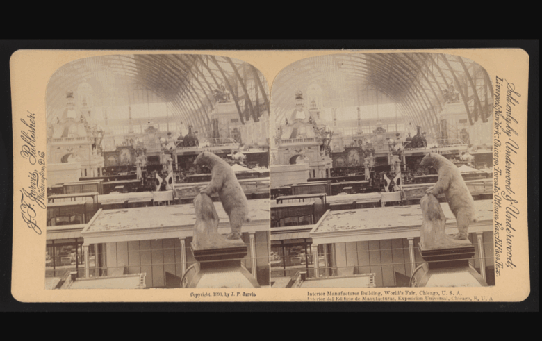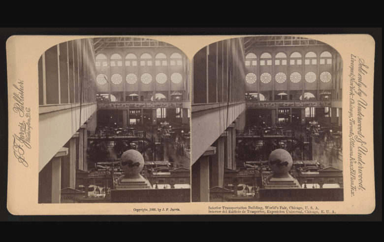 A look into the interior manufactures building at the World’s Fair.
