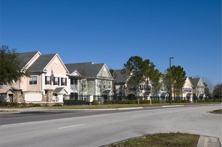 Residents share amenities like clubhouses, gyms, pools, parking, and the common grounds, and pay homeowners association (HOA) dues to support those shared assets.