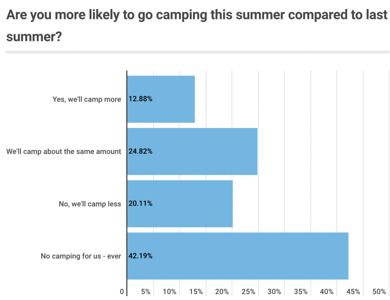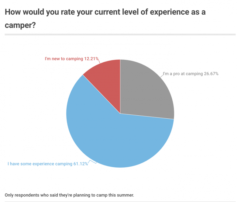 You can expect to see a mix of veteran and new campers at the campgrounds this summer. Twenty-seven percent of prospective campers consider themselves “pros,” while 12% are new to camping.