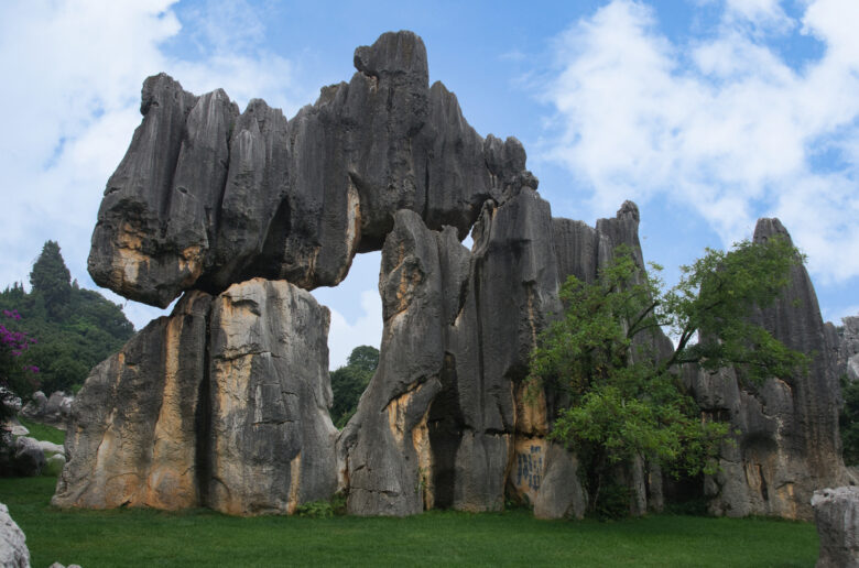 The Stone Forest (Shilin) in Yunnan, China is home to various plants, including evergreen broad-leaved forests.