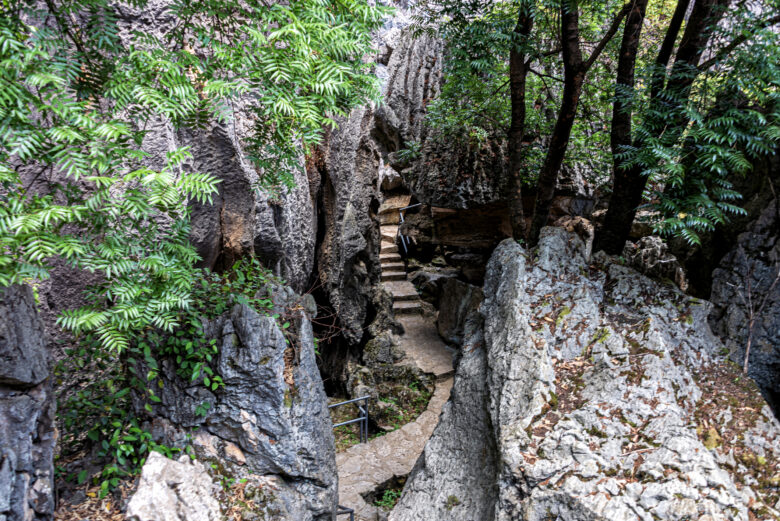 Stairs, narrow passages, and trails that allow visitors to navigate the unique limestone formations.