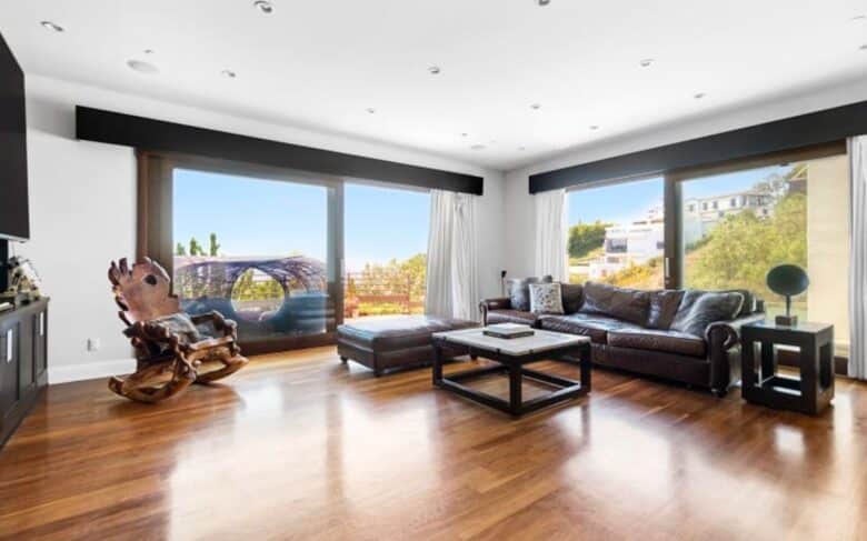 Sassman’s renovation project saw the former Greta Garbo estate double in size (it was initially a 2,000-square-foot home, now boasting 4,675 sq. ft. of living space) and turned the boxed-in abode into an open space masterpiece.