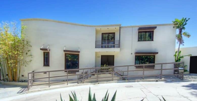 Sporting a distinct adobe-style design with flowing, curved lines, and a stucco facade, Garbo’s former L.A. home was completely reimagined in 2006 by well-known real-estate flipper, designer, and TV host Nicole Sassman.