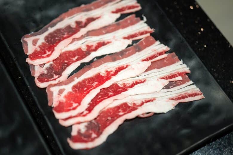 The typical KBBQ meats are those that are beautifully marbled and higher in fat content. Korean BBQ meats are thinly sliced, ideal cuts of meat that grill well on high heat without drying out or accidently cooked well done.
